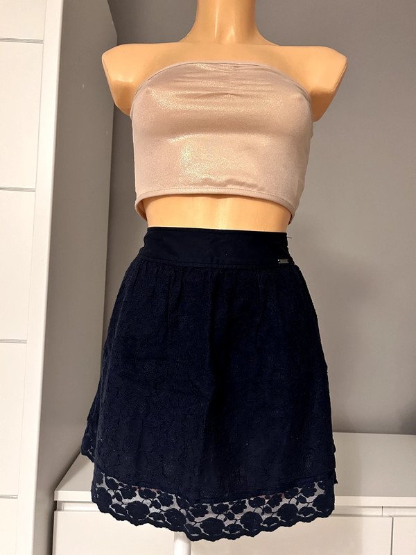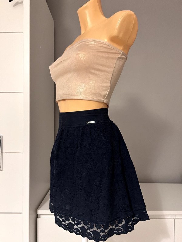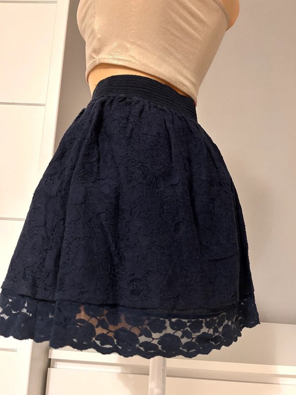 Spódniczka marki Stradivarius, rozmiar z metki to L, ale została błędnie wszyta, bo prawdziwy rozmiar to XS. Posiada piękną koronkę. Ma wysoki stan. Gumka w pasie sprawia, że dopasowuje się do sylwetki.