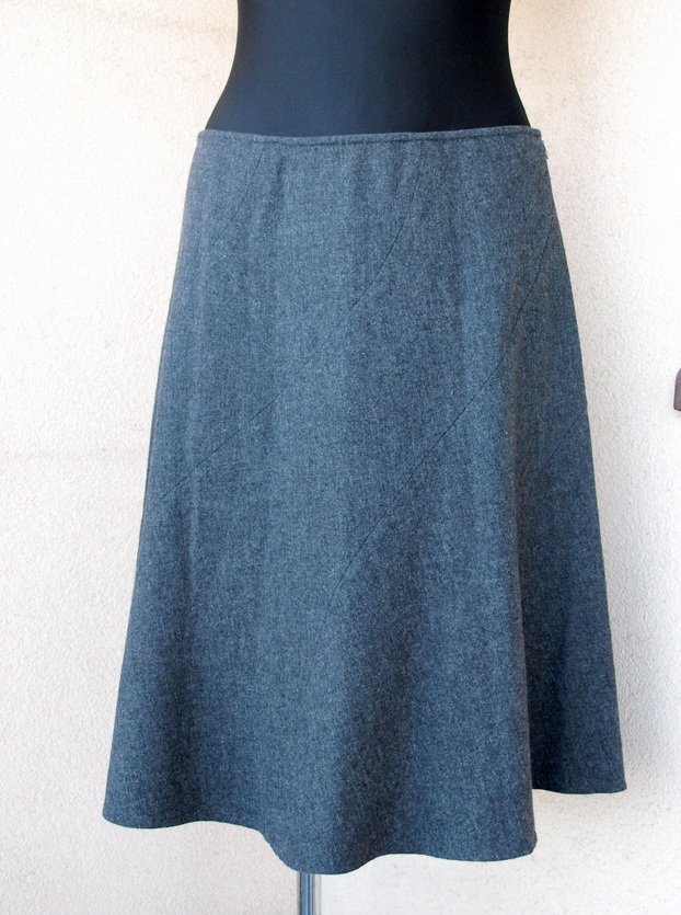 Spódnica marki Kookai, bey podszewki. Brak, metki ze składem, ale materiał przypomina wełnę. Materiał z meszkiem. Fason w trapez z ukośnych klinów. Stan bardzo dobry. zamek z boku. Rozmiar z metki 42. Podaję wymiary mierzone na płasko;