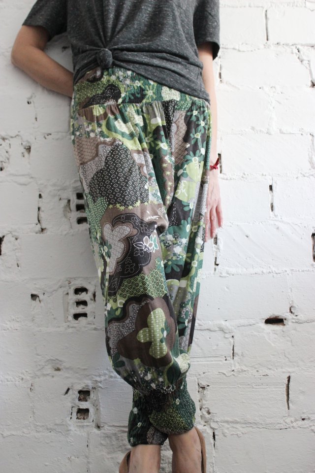 Spodnie boho, alladynki. Firma tradivarius. Rozmiar 36/S. Wymiary: obwód pasa-39cmx2 (rgulacja gumką), długość-96cm.