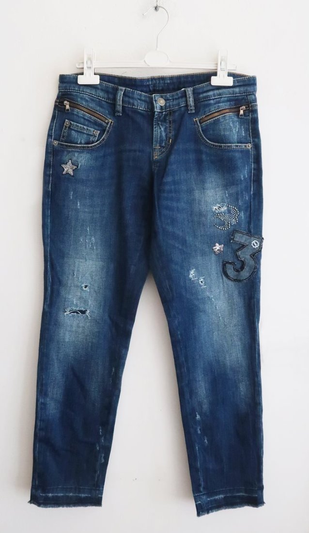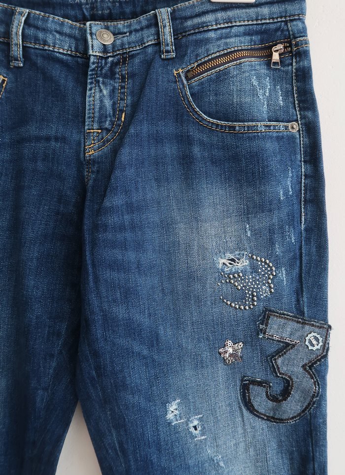 Spodnie jeansowe z naszywkami.