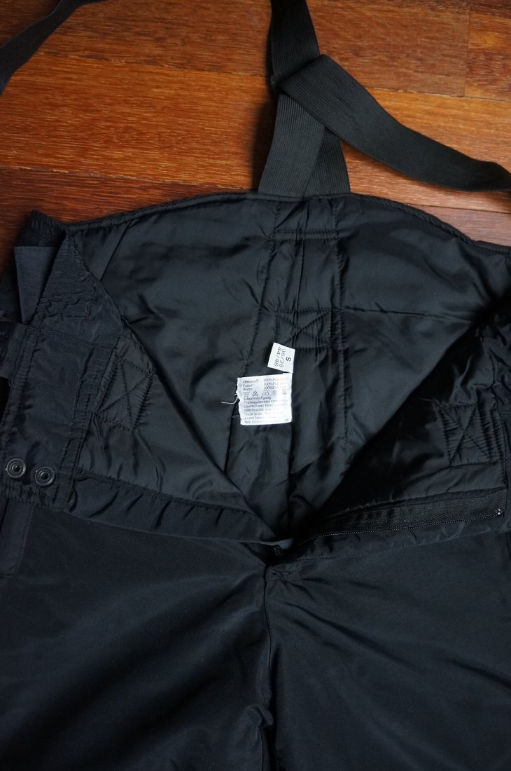 Czarne spodnie narciarskie. Męskie. Zapinane na suwak, dwie zatrzaski i pasek. Kieszenie zapinane na zamek, obwód pasa regulowany, kołnierz przeciwśnieżny, długość szelek można regulować. Stan bardzo dobry.