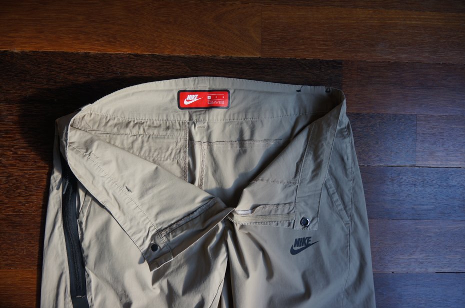 Męskie spodnie marki Nike. Kolor beżowy. Zapinane na suwak i nap. Z przodu dwie wpuszczone kieszenie. Z boku głęboka, wpuszczona kieszeń z przegródką na telefon - zapinana na suwak. Z tyłu jedna wpuszczona kieszeń zapinana na kryty suwak. Długi stan. Tkanina cienka - 96% bawełna, 4% elastan. Spodnie wiosenno-letnie. Nogawki zwężane ku dołowi, zakończone ściągaczem. Spodnie nie są nowe. Stan BDB minus.