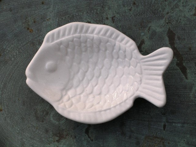 Ceramiczna rybka - forma zarówno do kuchennego, jak i łazienkowego wykorzystania. Fakturowa, przyjazna, na przyjemnie błyszcząco szkliwiona. 10 x 7 x 2 cm. Stan zachowania bardzo dobry.