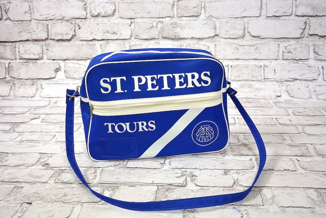 Niebieska sportowa torba w białe napisy, zasuwana na suwak,w środku brak kieszonek,- jedyna kieszeń na suwak z przodu torby, dno sztywne na metalowych nożkach zapobiegających porysowaniu.Torba posiada regulowany pasek .