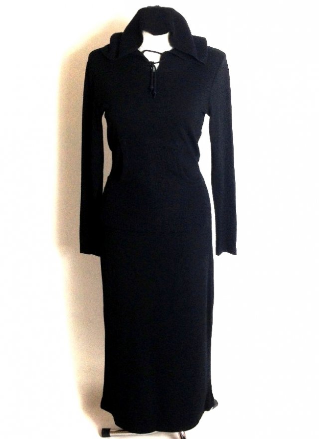 Czarna maxi sukienka wykonana z grubszej elastycznej dzianiny w stylu sportowym- z dużym kapturem i z przodu z dużą kieszonką kangurką(najlepiej widać na zdjęciu nr 3). Sukienka ma fason dopasowany do ciała w obrębie pasa i uda, stopniowa poszerzana ku dołowi. Sukienka znakomicie wpisuje się w trendy na rok 2014. Dzięki grubszej dzianinie możemy ją nosić o każdej porze roku.Świetnie wygląda do sportowych butów jak i przy długości midi.