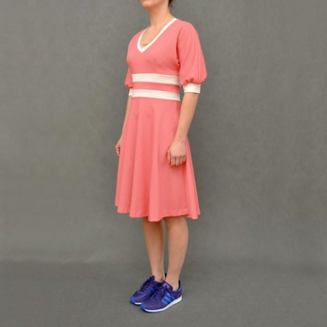 Sukienka 100% vintage świetnie wpisująca się w największy trend tego sezonu. Sportowa, różowa z białymi wstawkami. Z tyłu zapinana na zamek. Materiał 100%vintage.
