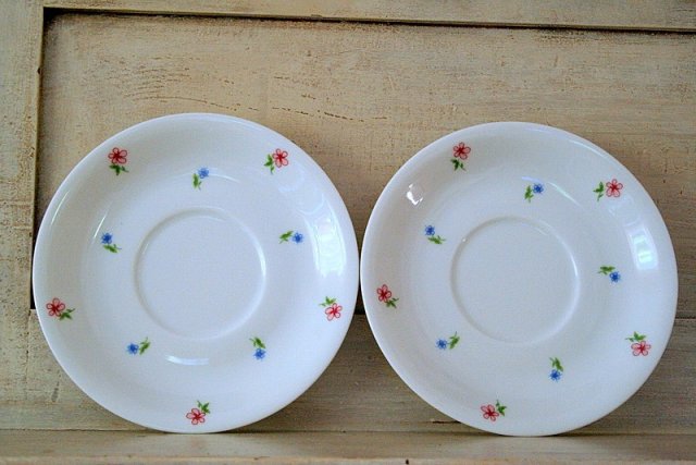 Urocze dwa porcelanowe talerzyki...białe w cudne, delikatne kwiatuszki.