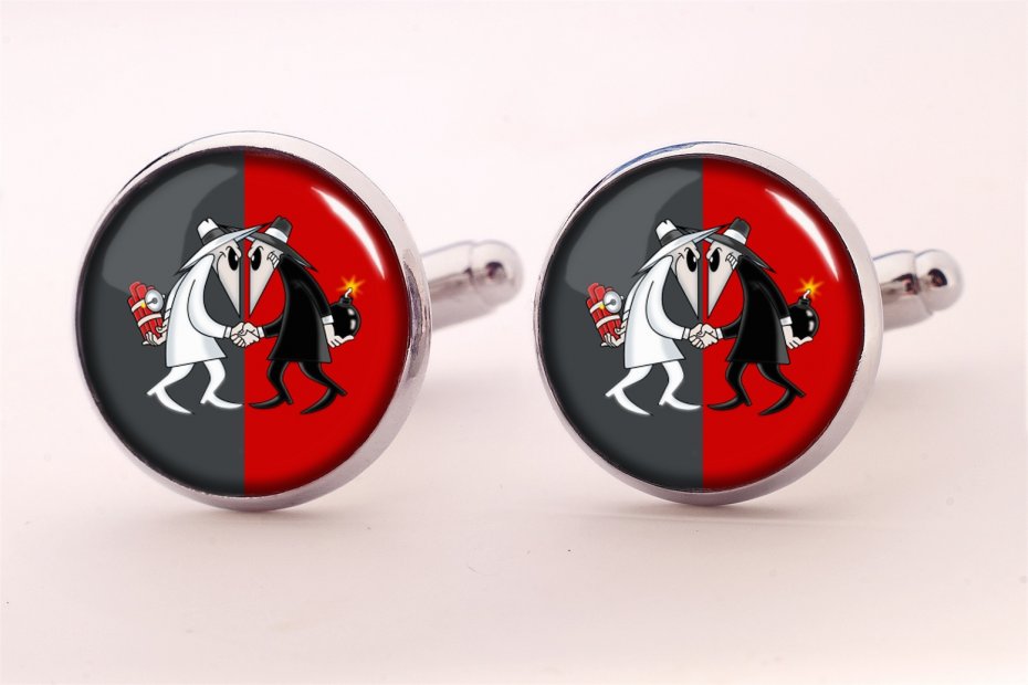 Ręcznie robione spinki do mankietów z wysokiej jakości grafiką pokrytą wypukłym, powiększającym szkiełkiem.