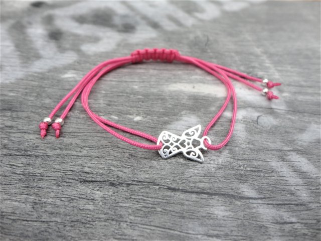 Bransoletka wykonana ze sznureczka jubilerskiego oraz srebrnej zawieszki.
