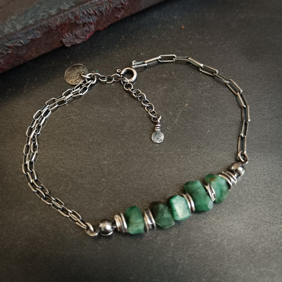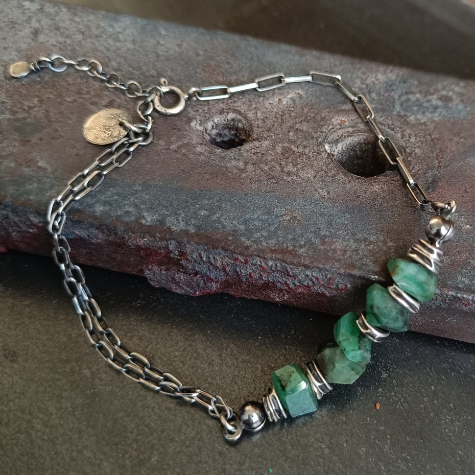 Tagi: #kamienie naturalne, #srebro oksydowane 925, #szmaragd, #szmaragdowa bransoletka