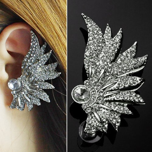 Piękna nausznica w srebrnym kolorze wysadzana białymi cyrkoniami.