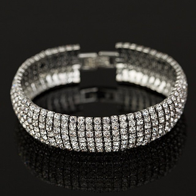Piękna bransoleta w kolorze srebra, wysadzana cyrkoniami.