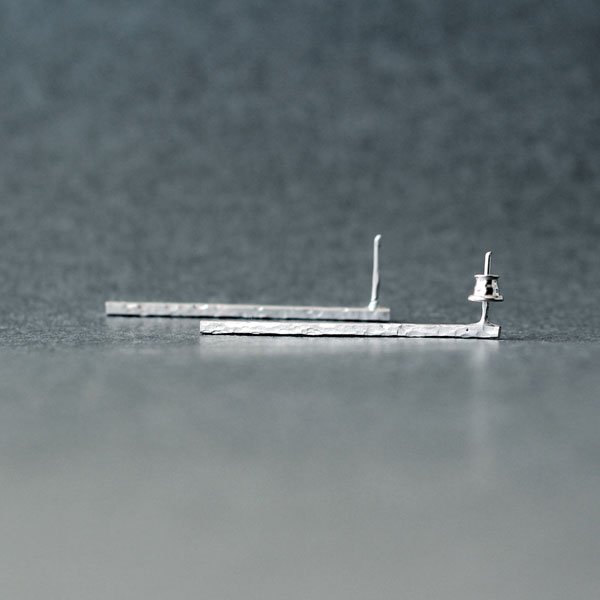 Proste, minimalistyczne kolczyki z serii PATYKI długie. Wykonane zostały z jasnego srebra o młotkowanej fakturze. Ich nowoczesna, prosta forma zjawiskowo prezentuje się w uchu. Teksturowane srebro nadaje charakter biżuterii.