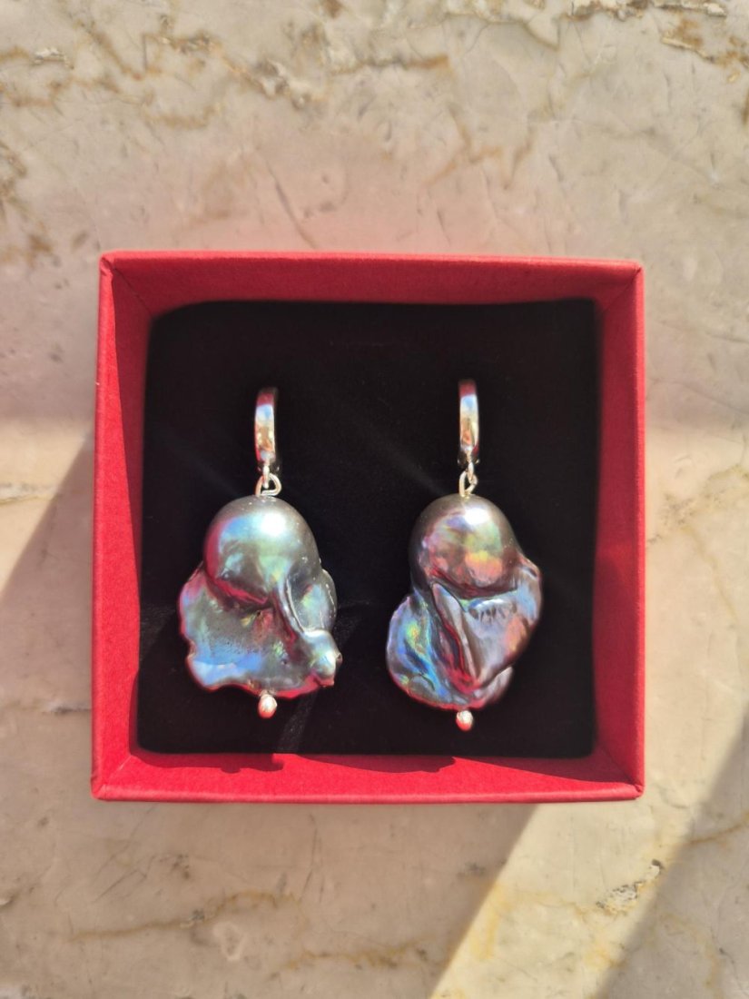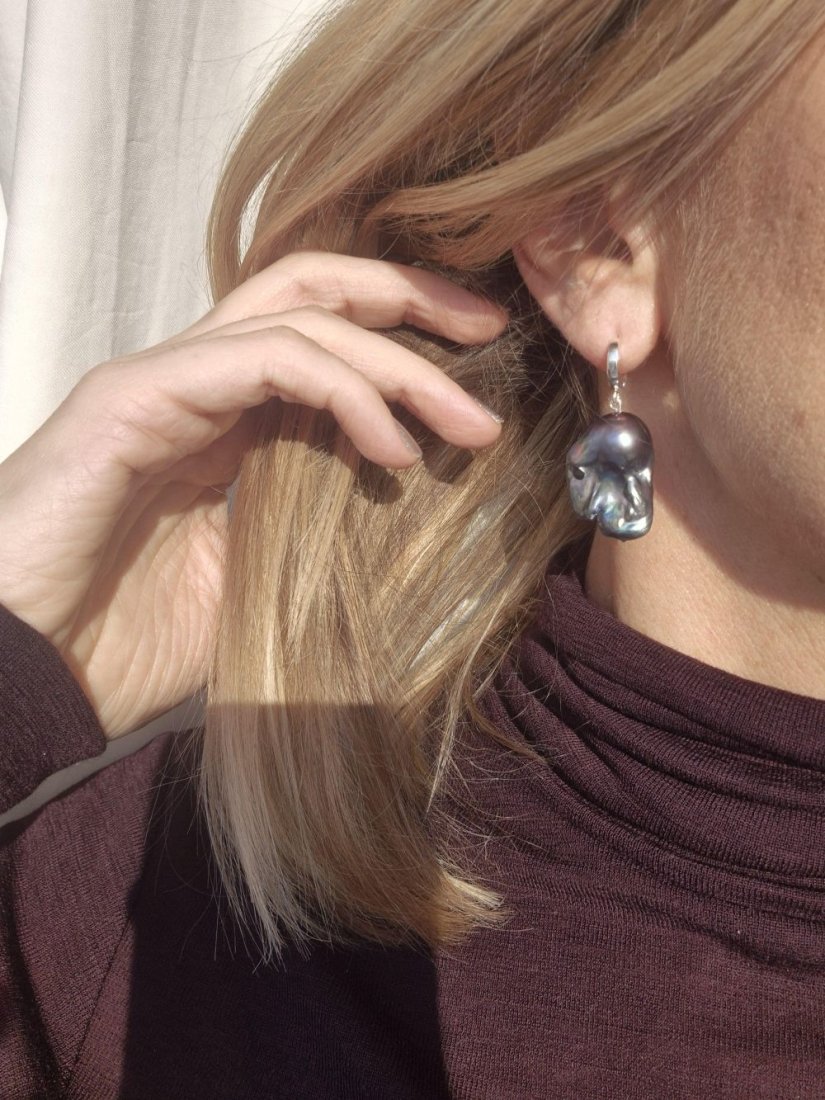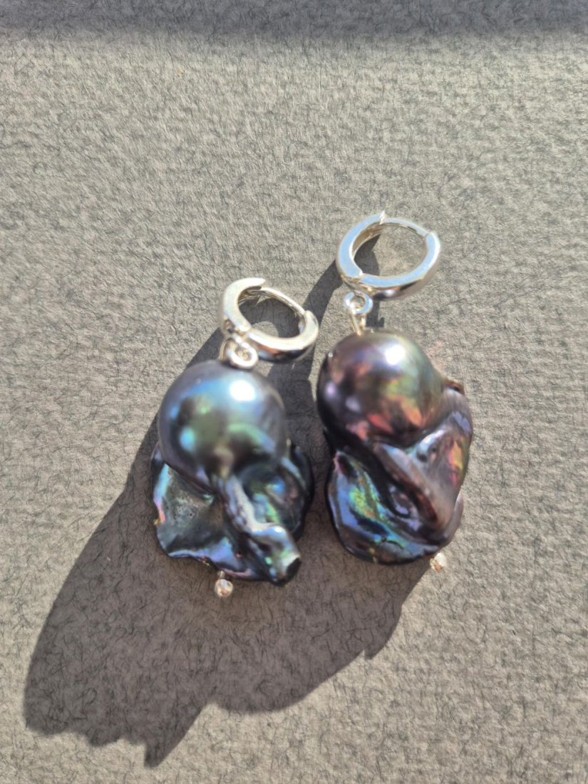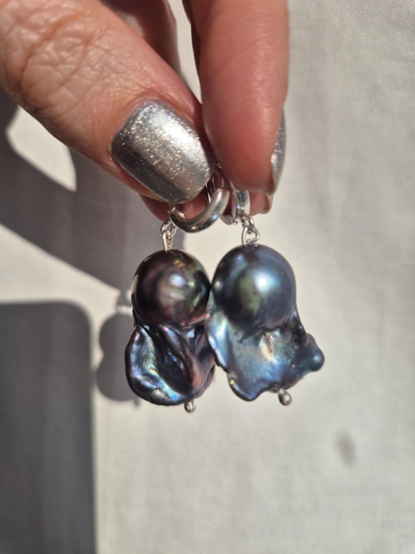 Tagi: #granatowe perły barokowe, #kolczyki z perłą barokową, #kolczyki z perłami, #srebrne kolczyki z perłą