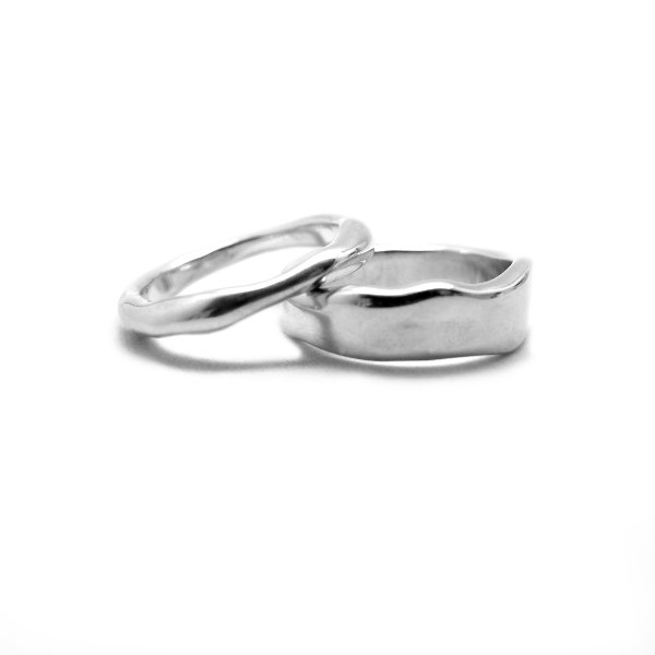 Srebrne obrączki ślubne Blurb to płynące, organiczne powierzchnie. Naturalnie ukształtowane, zastygłe w ruchu obrączki wykonane są ze srebra próby 0,925.