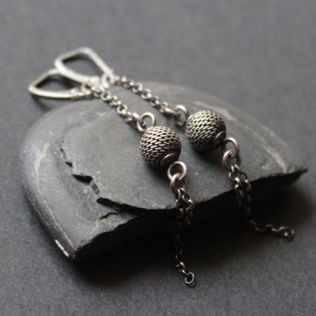 Kolczyki wykonane zostały z oksydowanego srebra próby 925. Długość całkowita kolczyków 8,1 cm. POLECAM!