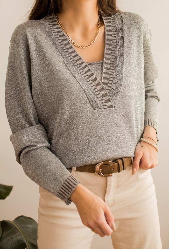 Cienki, srebrny sweterek.