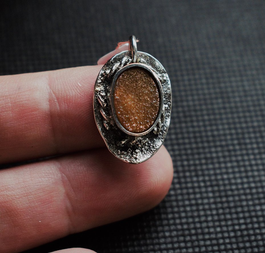 ✦ Piękny , wykonany ręcznie wisiorek ze srebra pr. 925 , oraz druzy agatowej z posypką tytanową.