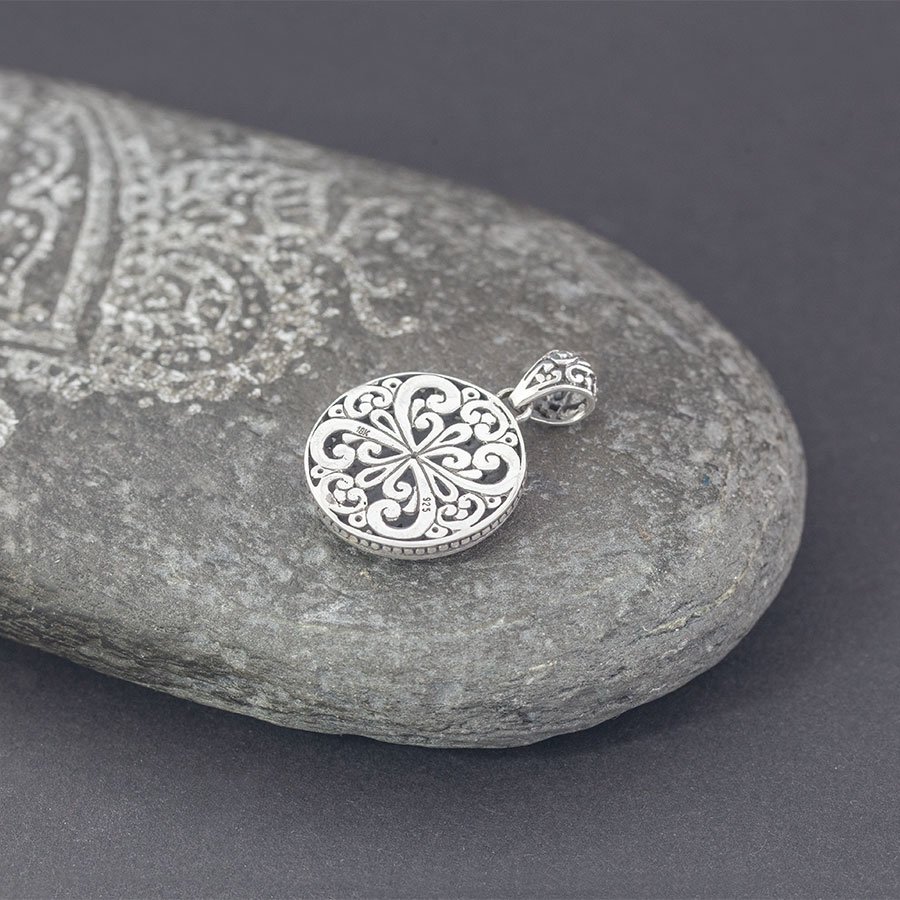 Na uwagę zasługuje pięknie zdobiony tył wisiorka.