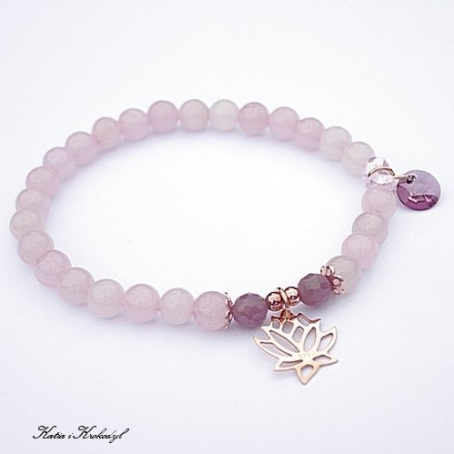 Bransoletka wykonana ze srebra i srebra pokrytego 14k złotem [ażurowe miseczki i kołeczka ] [pr.925] , zawieszki ze srebra pokrytego 2 warstwami różowego złota [pr.925] w połączeniu z fasetowanymi kuleczkami rubinów [6mm] ,kryształkiem Swarovskiego [8mm] ,miedzianymi kuleczkami [3mm] oraz kuleczkami jadeitów [6mm]. Pasuje na nadgarstek 16-18cm. Biżuteria ozdobnie.Bransoletka może stanowić komplet z innymi bransoletkami -przykładowe zdjęcia. zapakowana.