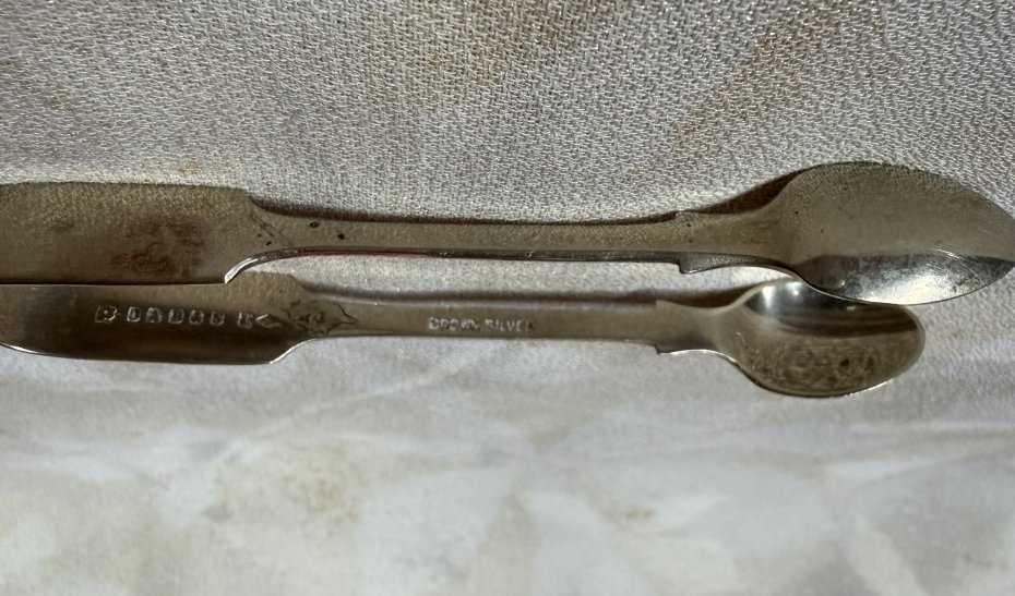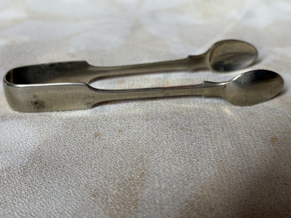 Crown Silver - Platerowane / srebrzone / nieduże szczypce do cukru w kostkach . Sygnowane , eleganckie , proste , bez nadmiernych ozdób .Dlugosc 12 wysokość nie pełne 1,5 cm łyżeczki do cukru prawie 3 x 2 cm Stan zachowania dobry . Ślady użytkowania . Uwaga !!! Nie czyszczę srebra i platerów specjalnie do sprzedaży .