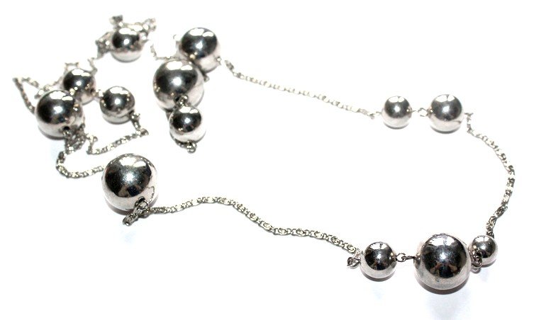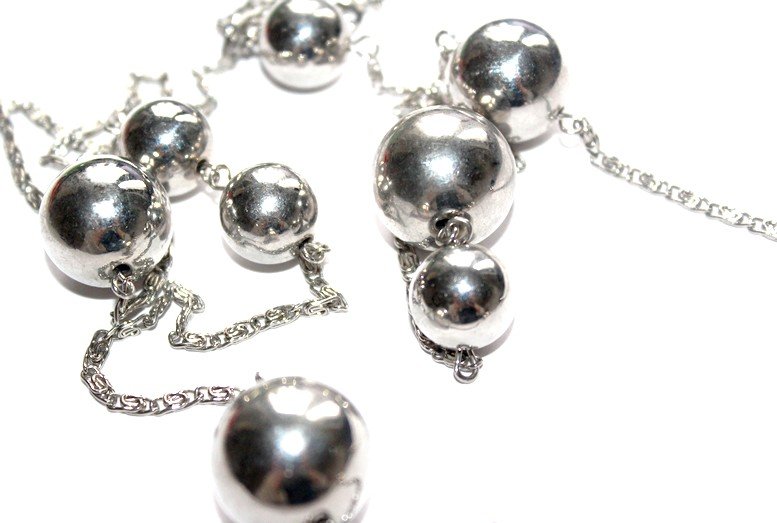 Tagi: #długi naszyjnik, #glamour, #metalowe kulki, #srebrne kulki