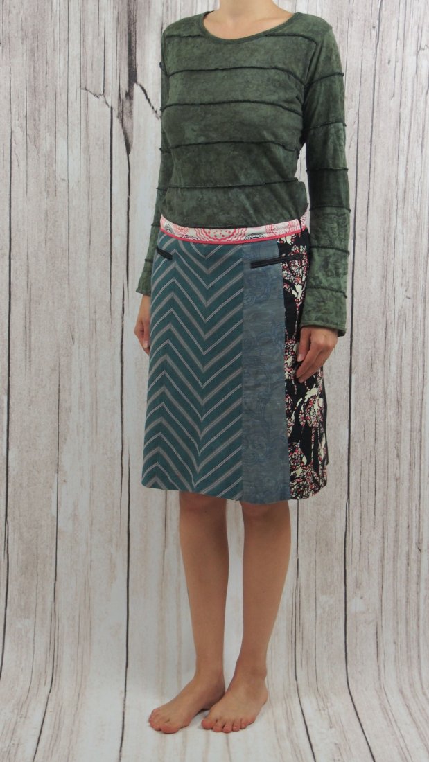 Cudowna spódnica od st-martins. Materiał patchworkowo zszywany: 1) bawełna, 2) len 55% i bawełna 45%, 3) poliester 65% i wiskoza 35%, podszewka z multikolorowego poliestru.