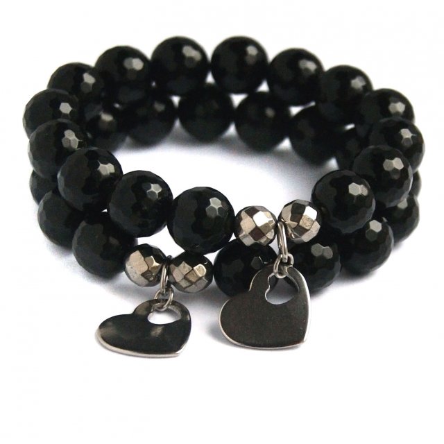elegancka, niezwykle efektowna bransoletka na solidnej lince elastycznej, wykonana z pięknego czarnego ONYKSU (spore, fasetowane kule 12mm) oraz zawieszki ze STALI SZLACHETNEJ (nie uczula, kolor nie ściera się) i 2 kul fasetowanego hematytu (8mm) .... ONYKS - Wzmacnia i regeneruje nerki. Łagodzi zaburzenia neurologiczne, apatię i stres. Wzmacnia system nerwowy. Dobrze działa na stan i wygląd skóry, zębów, paznokci i włosów. pomaga w skupieniu uwagi na najmniejszych detalach, ułatwia analizę faktów, dodaje cierpliwości i uczy samodyscypliny ... obw. wewnętrzny bransoletki: 16cm. ... DO KOMPLETU polecam idealnie dopasowanie kolczyki z identycznymi zawieszkami. przy zakupie bransoletki, kolczyki dostępne w cenie promocyjnej 29zł. ... UWAGA! cena dot. wyłącznie 1 bransoletki - kolczyki dostępne osobno. ... MOJA BIŻU ZAWSZE PODRÓŻUJE W OZDOBNYM OPAKOWANIU HANDMADE ;-)