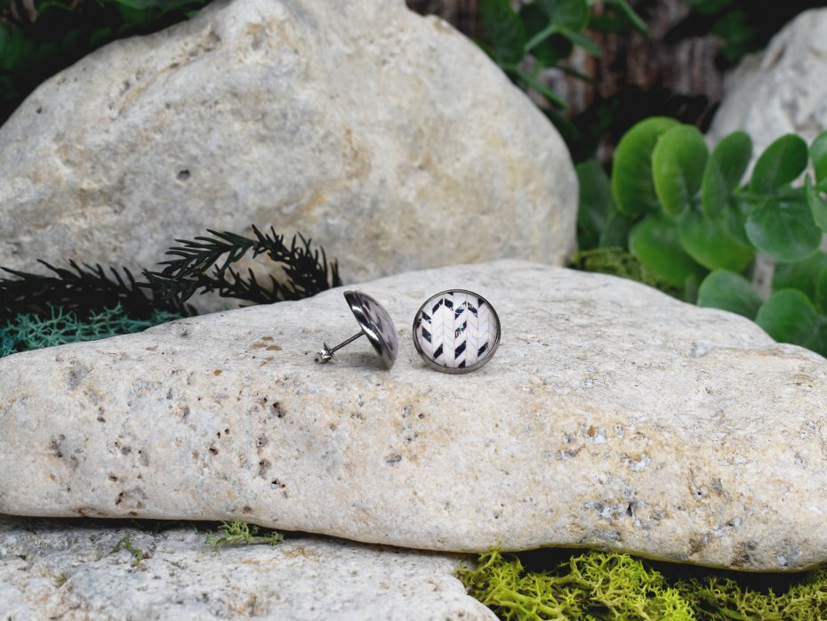 Ręcznie wykonane drewniane kolczyki w czarnym odcieniu ozdobione kaboszonami. Idealne do letnich kolorowych stylizacji boho / hippie.