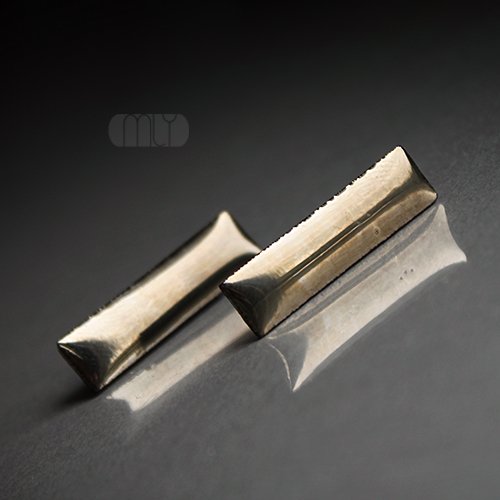 Ceramiczne podłużne kolczyki, ręcznie wykonane z delikatnej gliny kamionkowej, jednostronnie szkliwione mieszanką stalowoszarych szkliw z efektem plamek, tył matowy,na antyalergicznych sztyftach.długość ok 2,5cm. Polecam