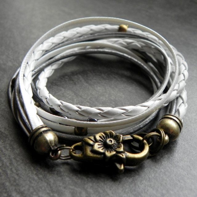 Bransoletka w stylu boho, wykonana została z rzemieni ze skóry naturalnej i ekologicznej, drobnych hematytów oraz elementów w kolorze antycznym. Będzie odpowiednia na nadgarstek 15-16,5 cm.