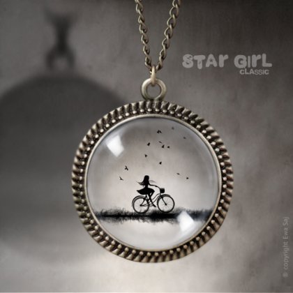 Romantyczny, oryginalny, zaczarowany naszyjnik. Miniaturka mojej grafiki została ukryta pod szklaną kopułą przeźroczystego szkiełka. Umieszczona na stylowym medalionie w kolorze antycznego złota