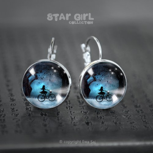 Oryginalne, zaczarowane, romantyczne kolczyki z kolekcji Star Girl. Miniaturki moich grafik ukryte pod szklaną kopułą organicznego szkiełka. Długość kolczyków 3 cm średnica graficznej miniatury 16 mm. baza kolczyków w kolorze srebra.