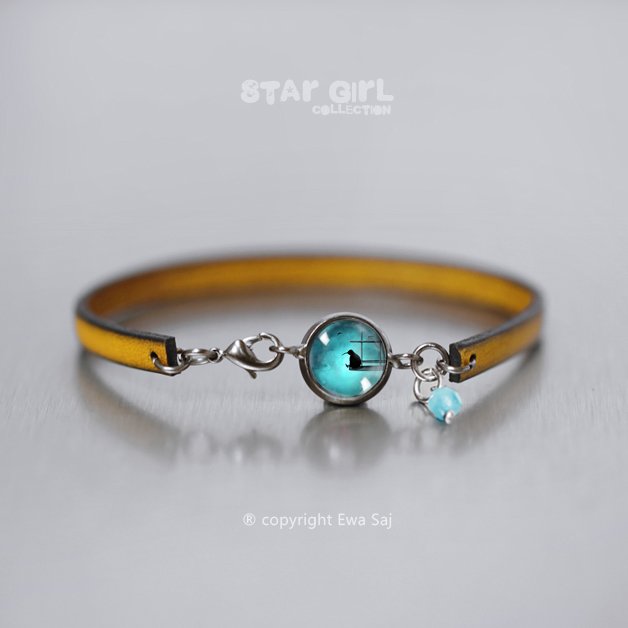 Oryginalna delikatna, kobieca bransoletka z kolekcji Star Girl. Grafika została ukryta pod 10 mm wypukłym szkiełkiem. Pasek w kolorze żółtym, ma szerokość 5 mm, dodatki w kolorze ciemnego srebra. Idealna na nadgarstek 14,5 - 15,5 cm. Zrób sobie prezent! Wolny od niklu i ołowiu - antyalergiczny. copyright Ewa Saj. All Rights Reserved. Jeśli potrzebujesz inny rozmiar - napisz do mnie.