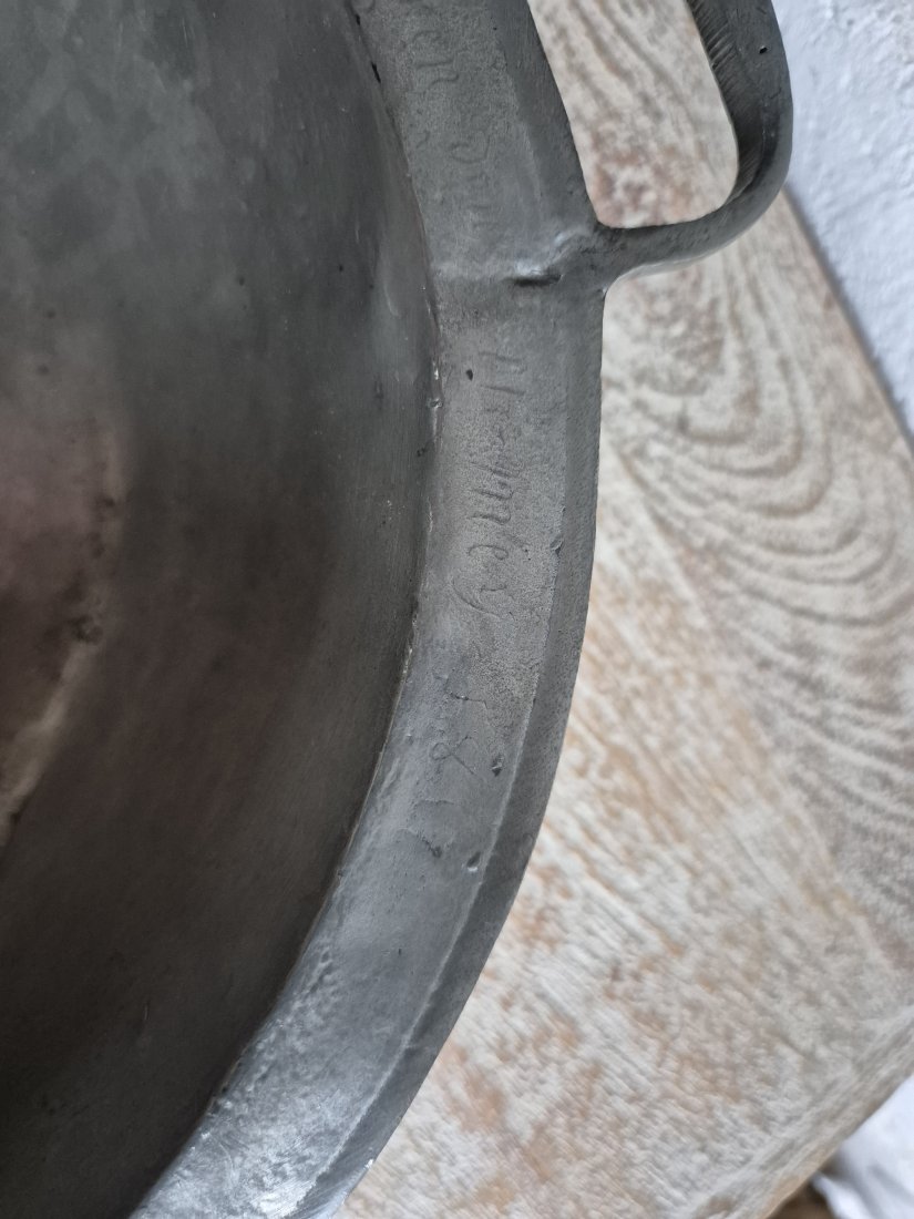 stara metalowa misa z uchwytami z XIX-tego wieku, która prawdopodobnie była kiedyś misą chrzcielną (na brzegach posiada inskrypcję z imieniem i nazwiskiem oraz datą urodzenia - 14 maja 1817), może służyć np jako misa na owoce