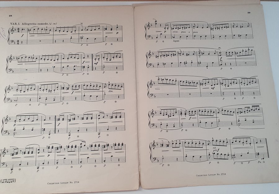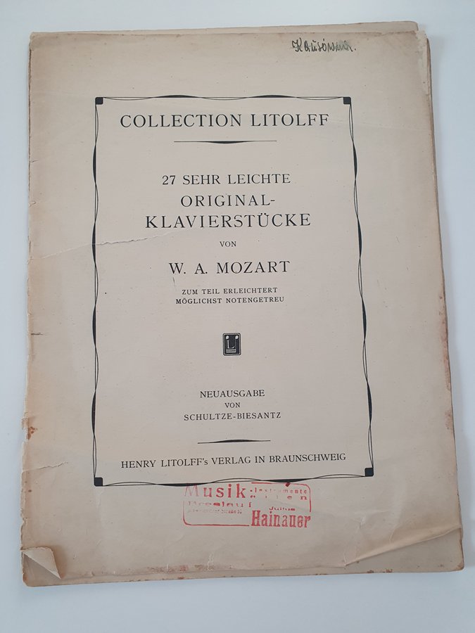 Stare nuty wydane przez Henry Litolff's Verlag Braunschweig, pieczęć Hainauer/Breslau. Zawiera utwory Mozarta. Pożółkłe, stare nuty retro - wspaniały element kolekcji lub dodatek do wnętrza vintage.