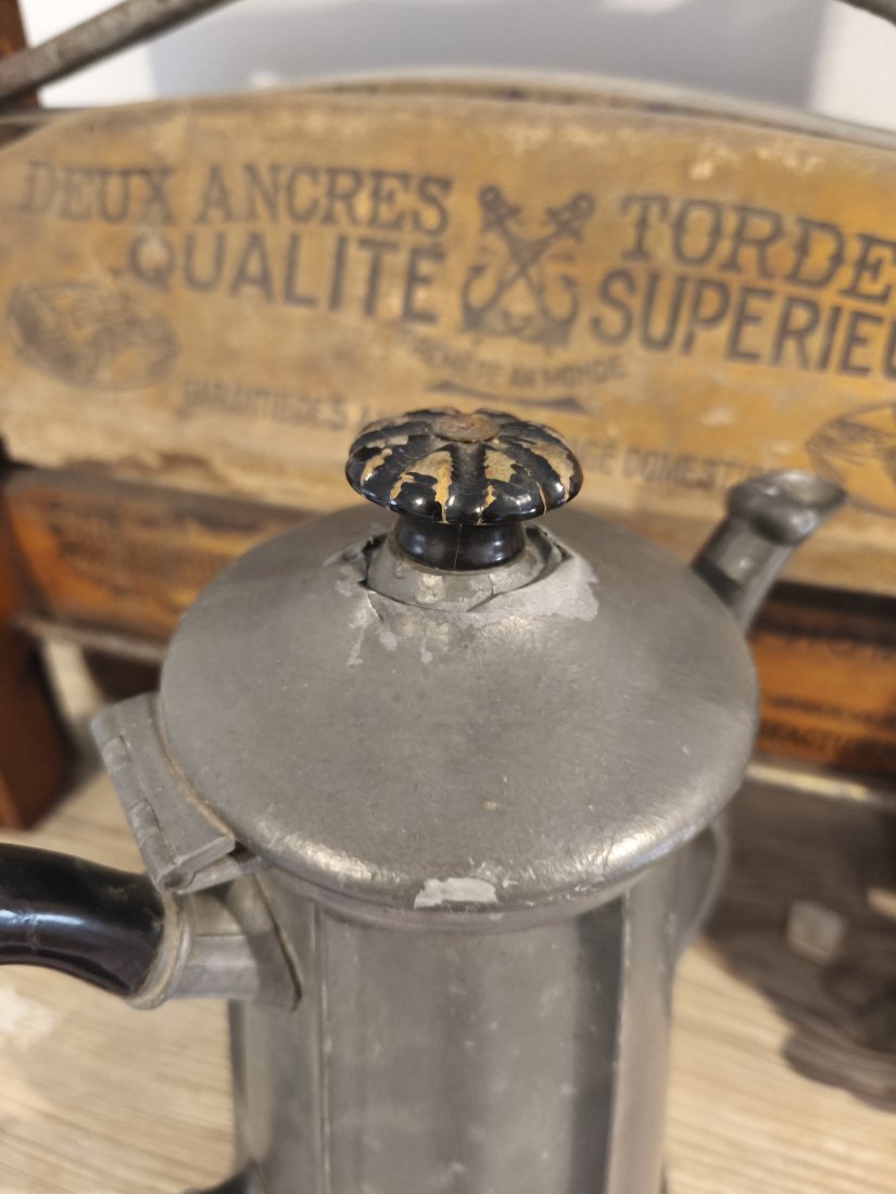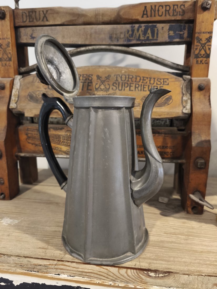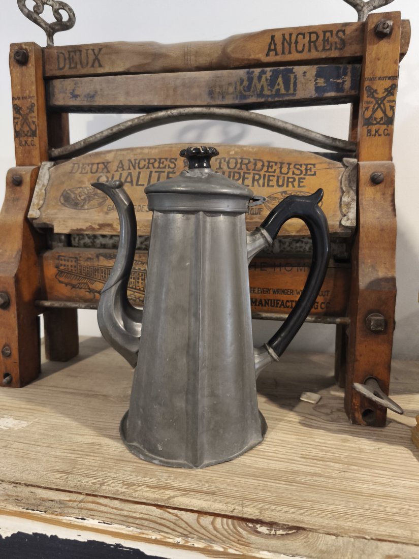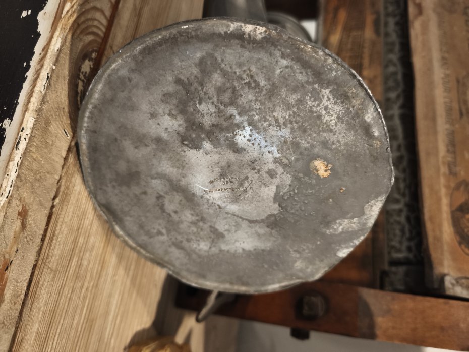 Stary czajnik, dzbanek metalowy. Sygnowany.