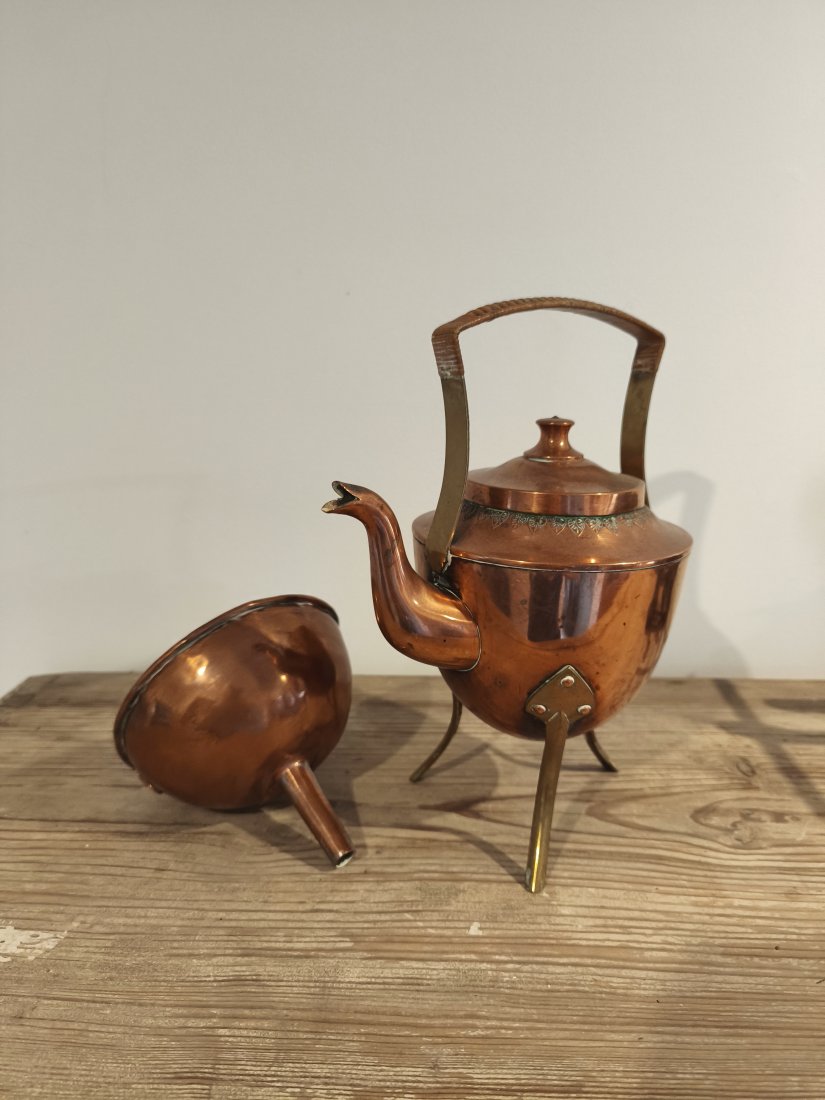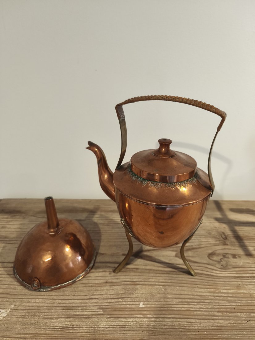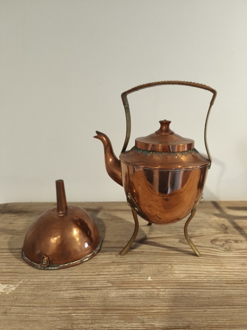 Stary miedziany czajnik i lejek. Super do wystroju w stylu Vintage.