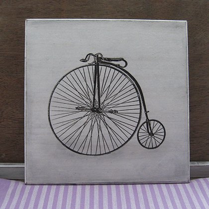 Obrazek wykonany na płycie mdf. Ozdobiony motywem retro roweru.