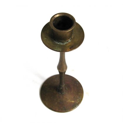 Przepiękny, stary, mosiężny świecznik. Prosty kształt, bez zdobień, posiada otwór na cienką świeczkę, na delikatnej nóżce, stabilny. Idealny zarówno jako podstawa do stroika świątecznego, a także piękna ozdoba przez cały rok, polecam