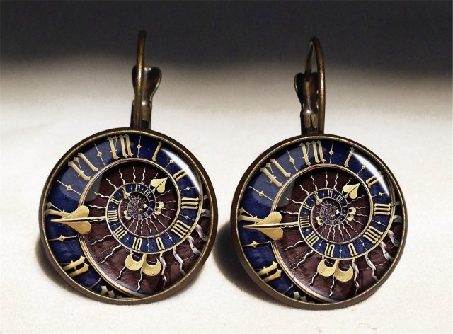 Ręcznie robione kolczyki wiszące z wysokiej jakości grafiką pokrytą wypukłym, powiększającym szkiełkiem.