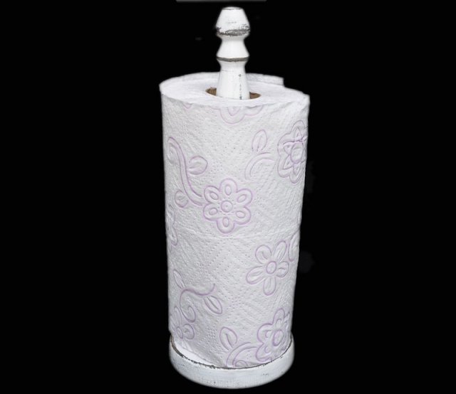 Stojak na ręczniki papierowe wykonany z drewna bukowego.