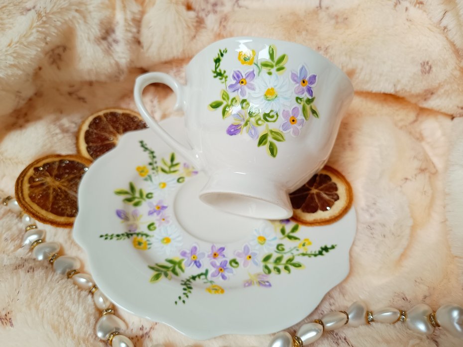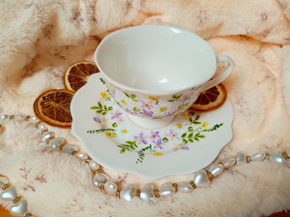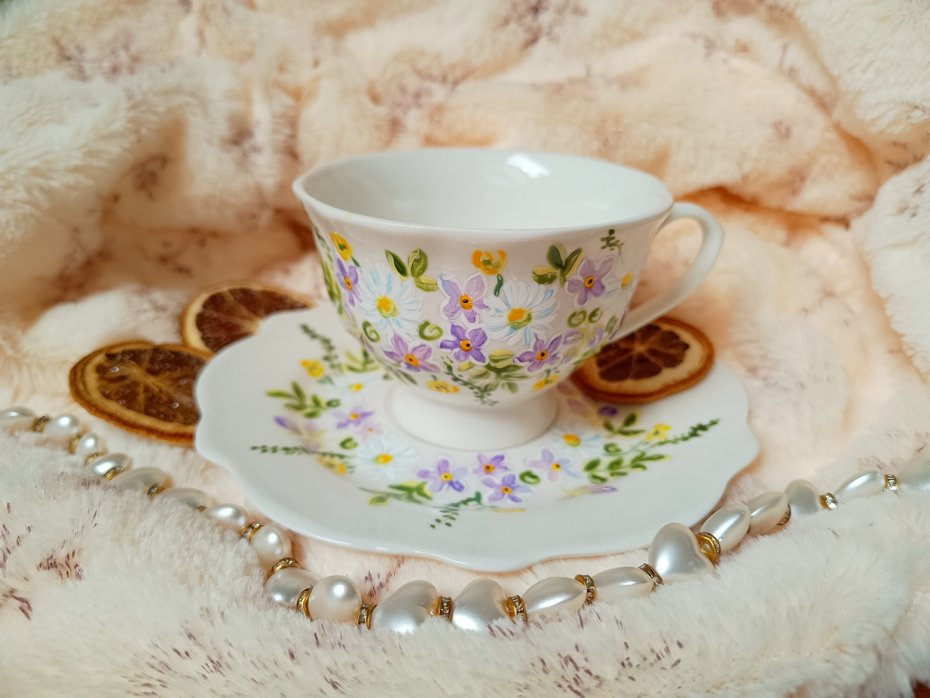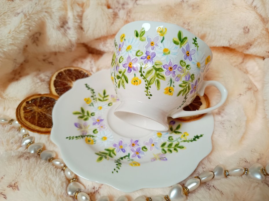 Kubek malowany wiele godzin z wielką troską o wszelkie szczegóły z miłości do natury, z miłości do tego co piękne i ulotne..
