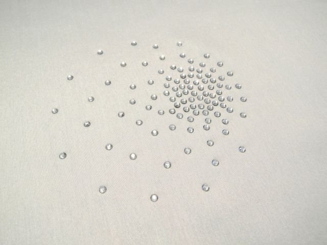 subtelny i elegancki bieżnik w kolorze złamanej bieli, ozdobiony na środku migoczącymi sztrasami.