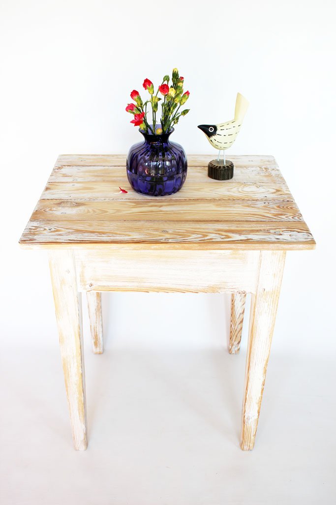 Nieduży, całkowicie drewniany stolik vintage po całkowitej renowacji.
