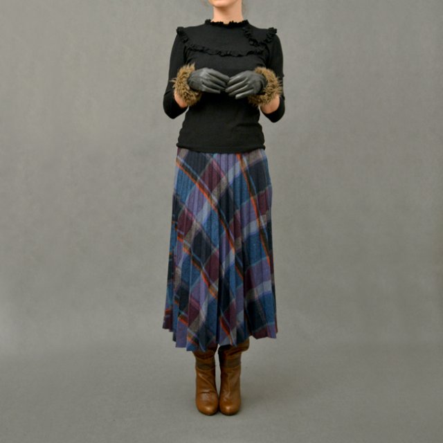 Spódnica vintage o długości midi w stonowaną kratę w bardzo fajnie dobranych kolorach. Rozszerzana, plisowana, zapinana na zamek i guzik.