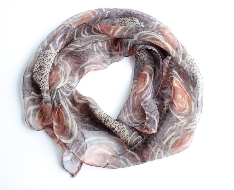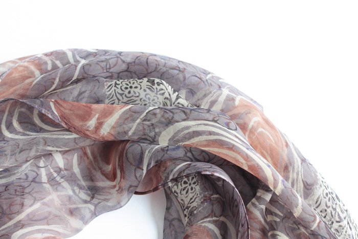 Zwiewny jak mgiełka szal stonowanych odcieniach.