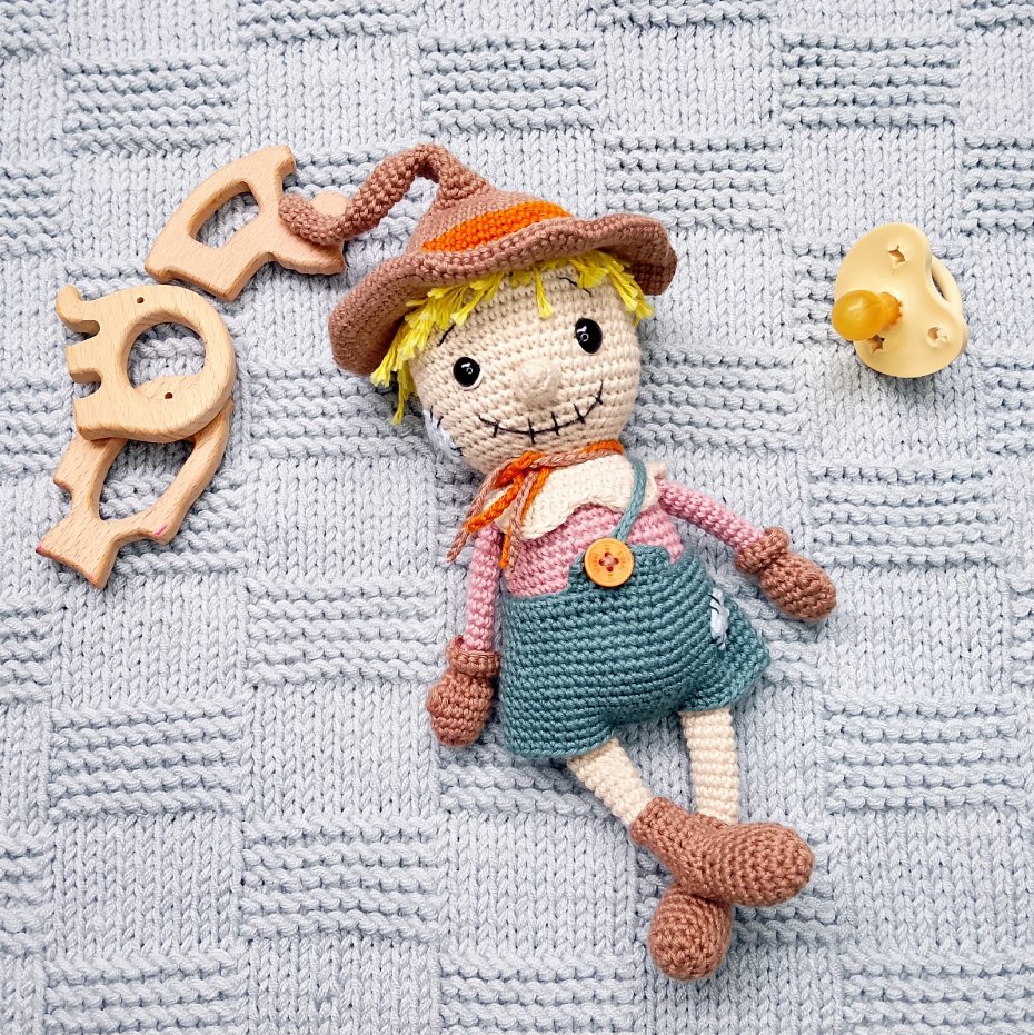 Straszek Staszek z pewnością wywoła uśmiech na twarzy każdego dziecka. Wykonany z miękkiej bawełnianej włóczki.