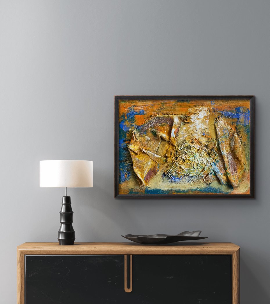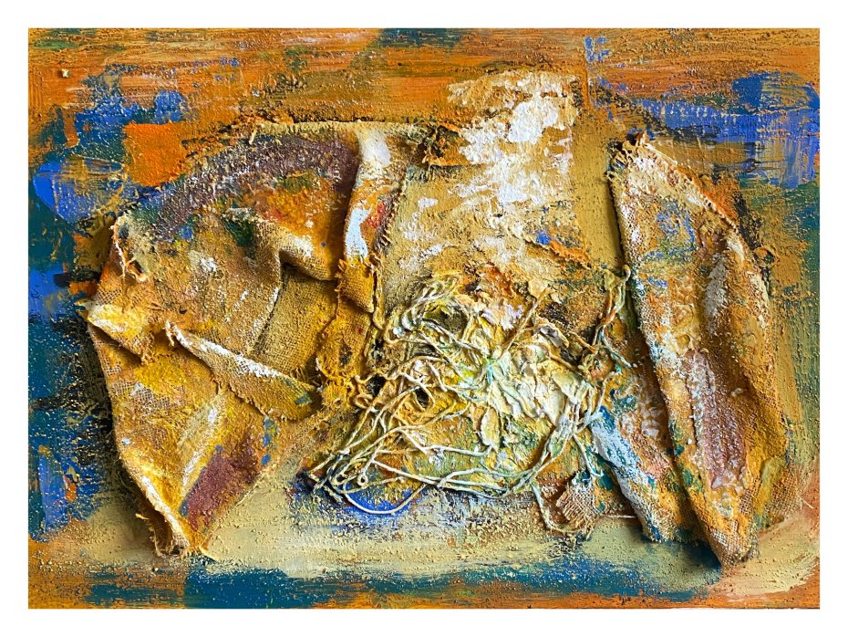 Kolorystyka złamanych żółci, ochry i przytłumionych błękitów - wypłowiałe światło. Słońce nie jest tu triumfem, lecz czynnikiem erozji. Splątanie włókien jest miejscem przeciążenia, punktem, w którym ambicja, marzenie czy energia kumulują się zbyt intensywnie i zaczynają się rozpadać.