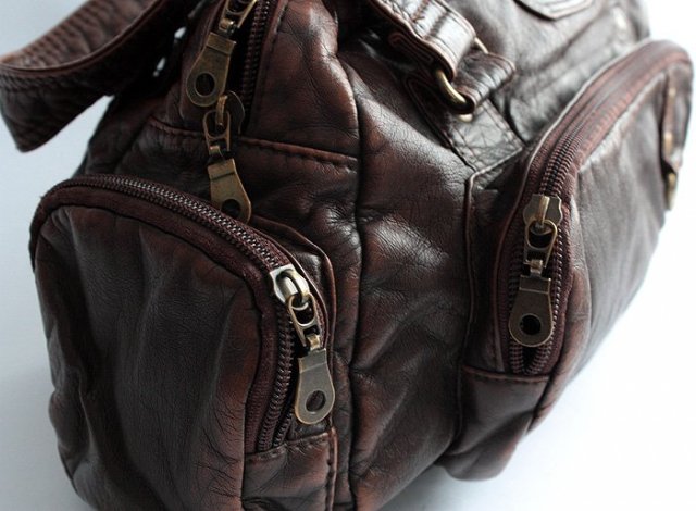 Oryginalna, postarzana torebka wykonana ze skóry naturalnej lub ekologicznej. Posiada wewnątrz 3 kieszenie, w tym jedna na suwak.